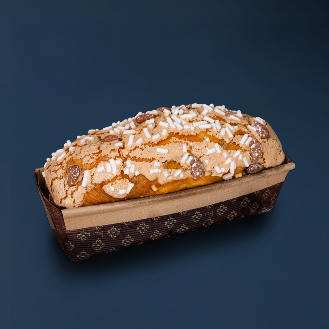 Farina di grano tenero, burro, tuorlo, zucchero, acqua, uvetta, canditi d'arancia, lievito madre, miele d'acacia, pasta d'arancia, malto, sale, bacca di vaniglia, albume, d'uovo, amido di mais, amido di riso, mandorle.